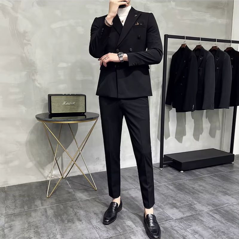 Le Costume Homme Croisé Uni Premium Maximus est le choix idéal pour les hommes qui privilégient la sophistication et l'élégance en toute occasion. Avec sa coupe slim et sa finition impeccable, ce costume croisé dans un ton gris uni dégage pouvoir, style et modernité.